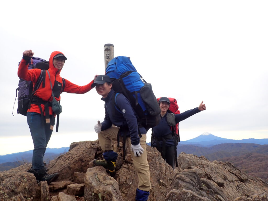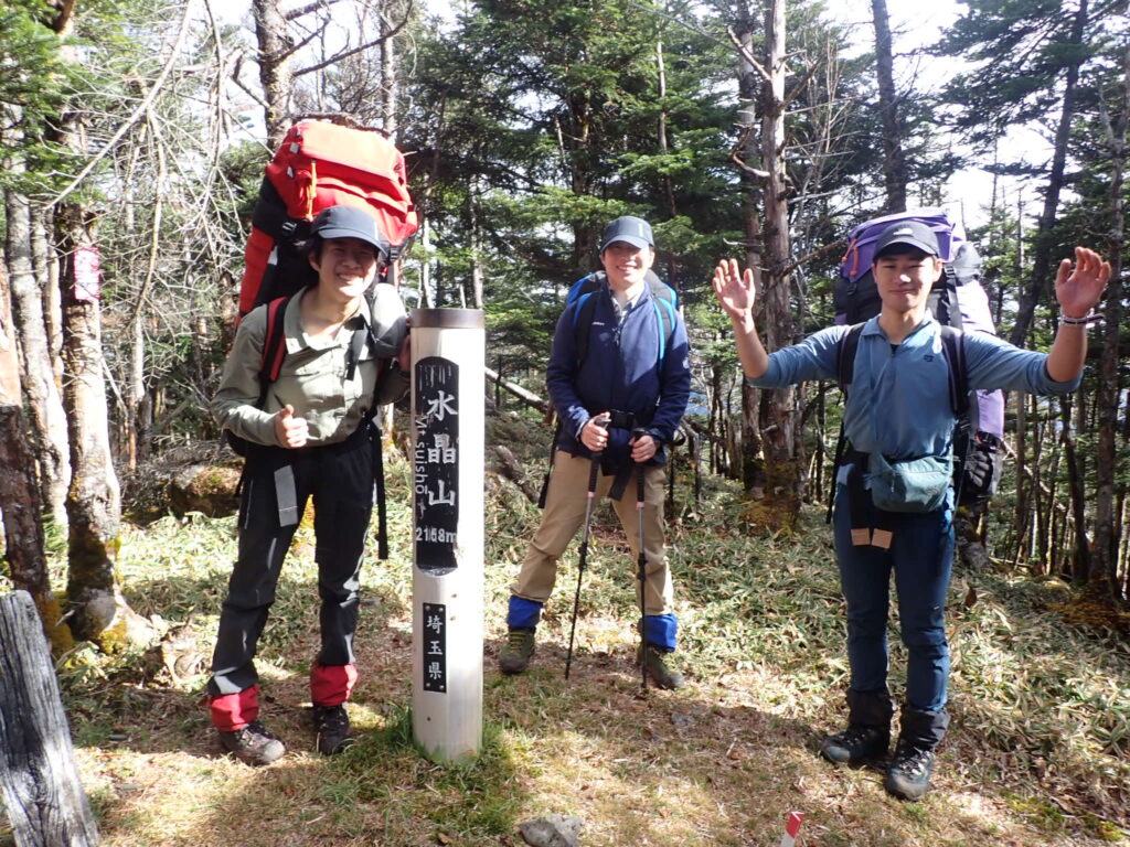 ゆるやかな登りを進み五十人平野野営場で休憩する。途中関のペースが遅れてきた為ゆったりと進み雲取山に着く。