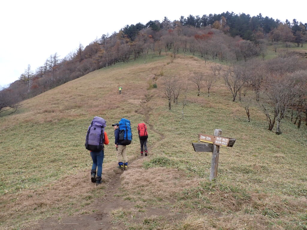 古礼山の登り手前で腰痛が悪化したため、さらに荷物を抜く。