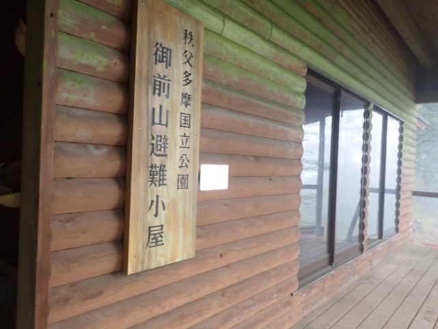 分岐からゆっくりとしたペースで進み、御前山に到着する。御前山で写真を撮った後、スリップに注意しながら下り、御前山避難小屋に到着する。