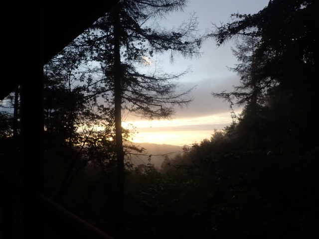 起床時に関の体温を測ったところ39.6度あったため、小沢バス停に下山することとする。