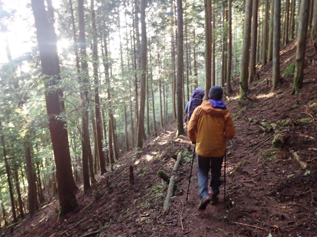 御前山避難小屋(6:05)~湯久保山(7:04)~小沢バス停(9:07)