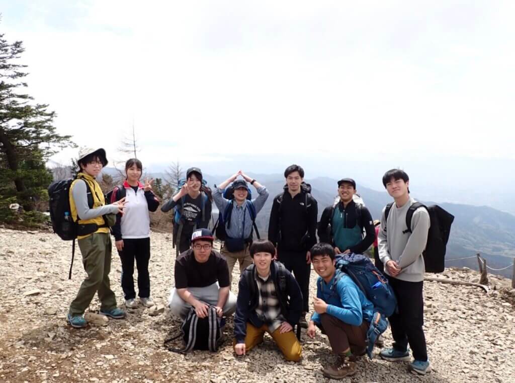 会話ができるほどのペースで適宜休憩を挟みながら進む。大菩薩嶺に到着した後、山頂にて写真撮影を行う。